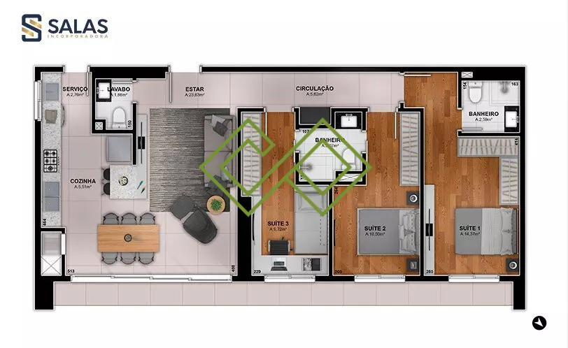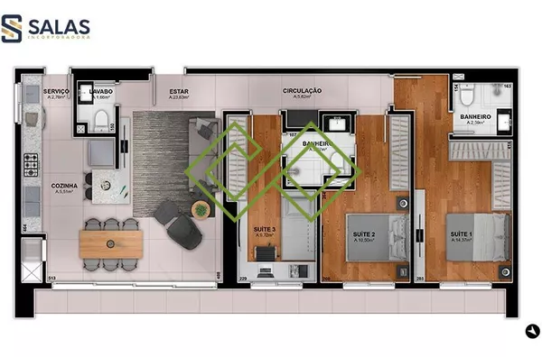 3 (sendo 3 suítes)